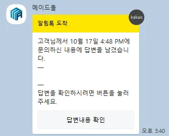 답변이 작성되었다는 알림이 도착하게 됩니다.