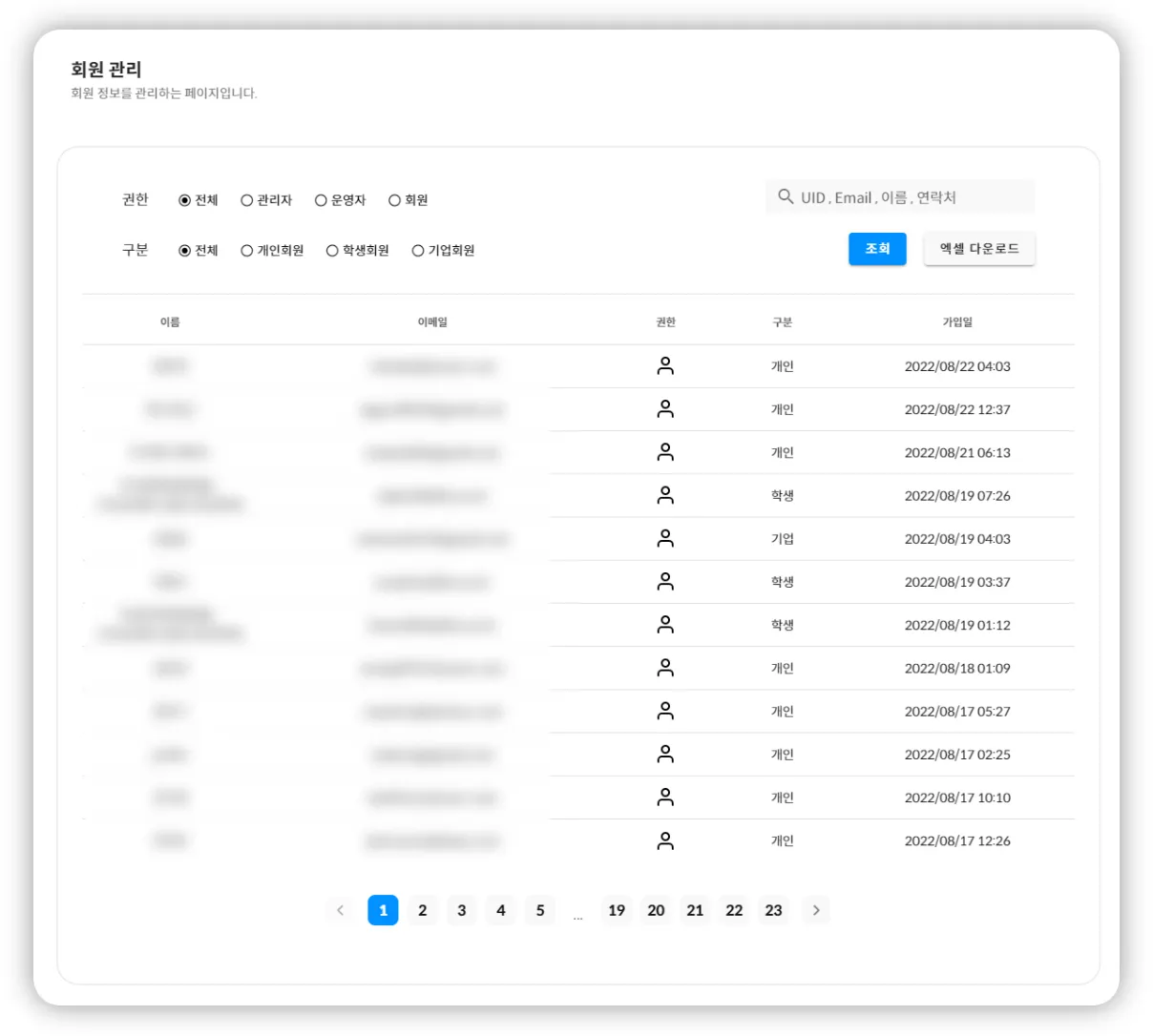 관리자를 위한 회원 관리 시스템이에요.