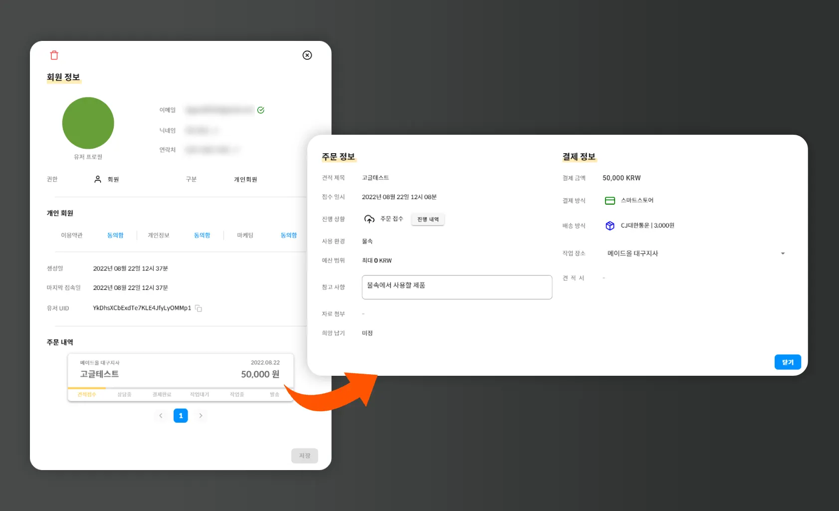 관리자의 회원 정보 수정 및 확인 팝업이에요.