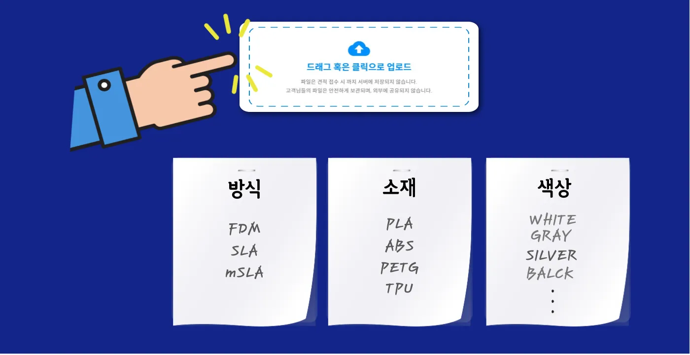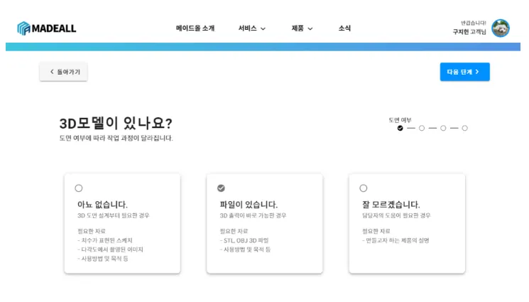 STL 파일을 업로드 시, 3D 파일 미리보기가 가능합니다.