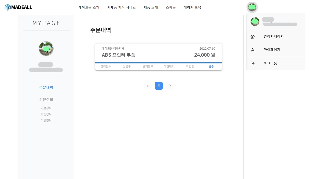 마이페이지에서 주문 내역을 조회할 수 있습니다.
