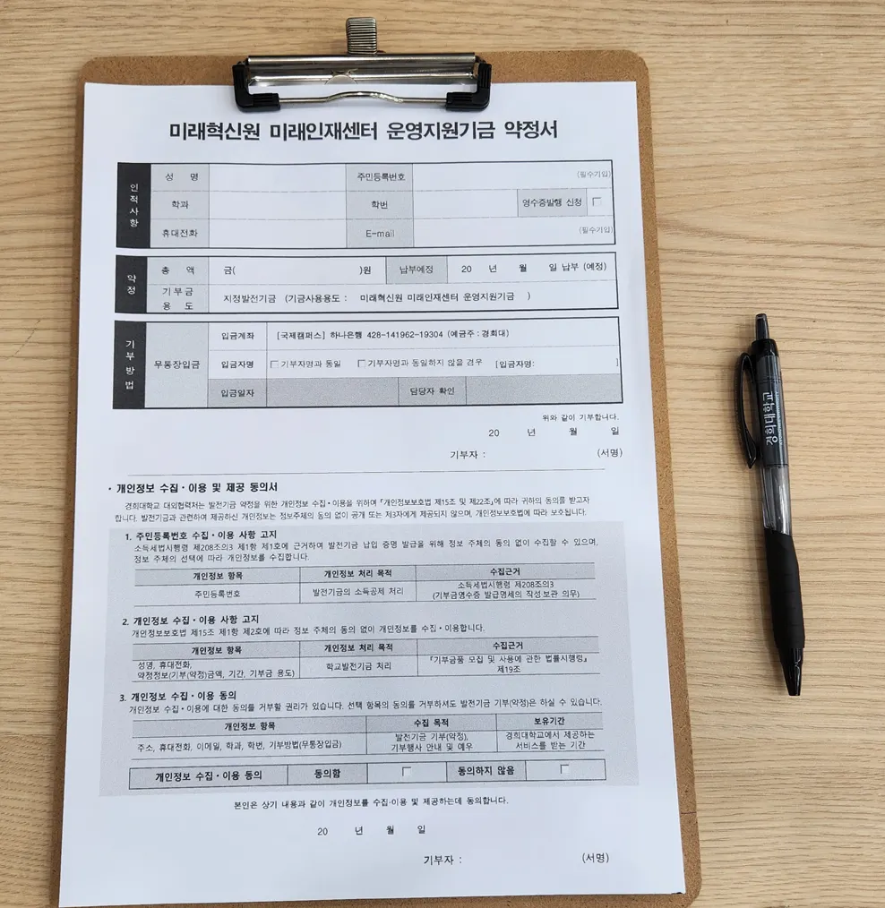 오픈랩에 방문하셔서 기부금 약정서를 작성하시고 수령 하시면 됩니다.