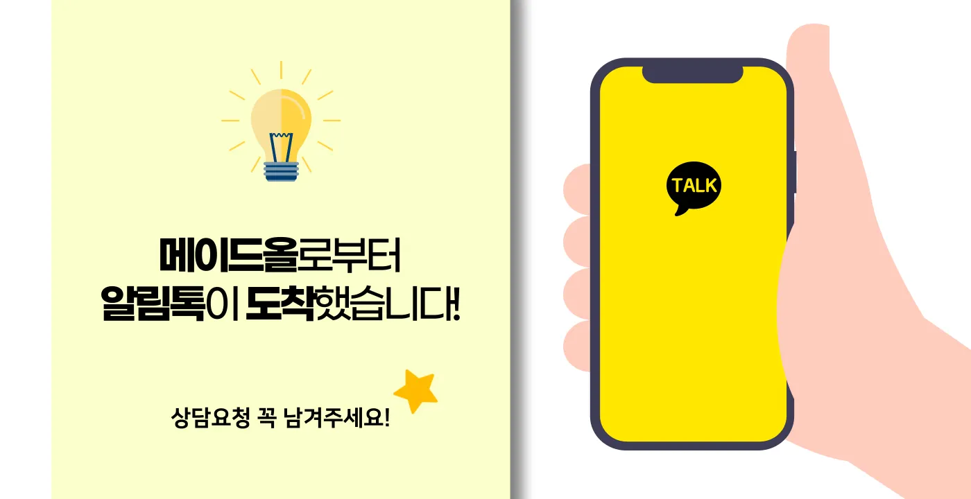 카톡을 남겨주신 순서대로 메이드올에서 견적 확인 및 상담이 진행됩니다.