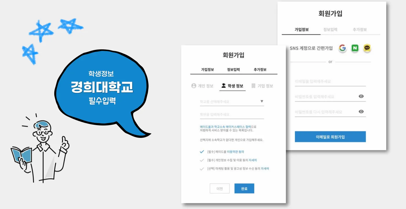 회원가입을 진행하고 학생정보를 입력해 주세요